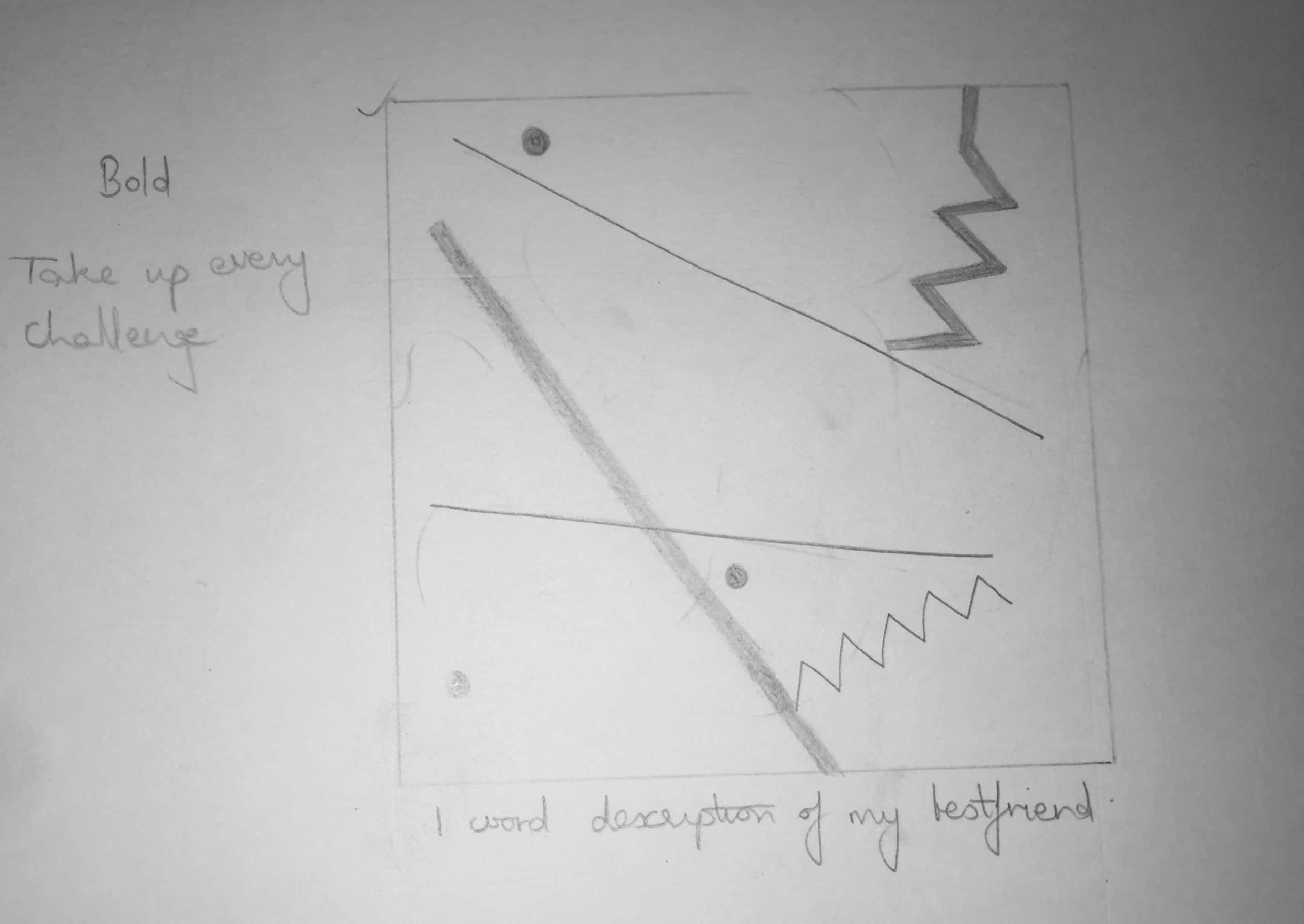 In this class we made compositions on various topics and explored how lines and dots can be used to add meaning to a composition. We made various changes and improved our compositions. Here are my compositions.