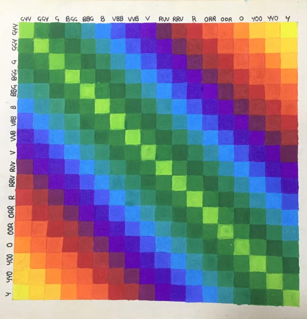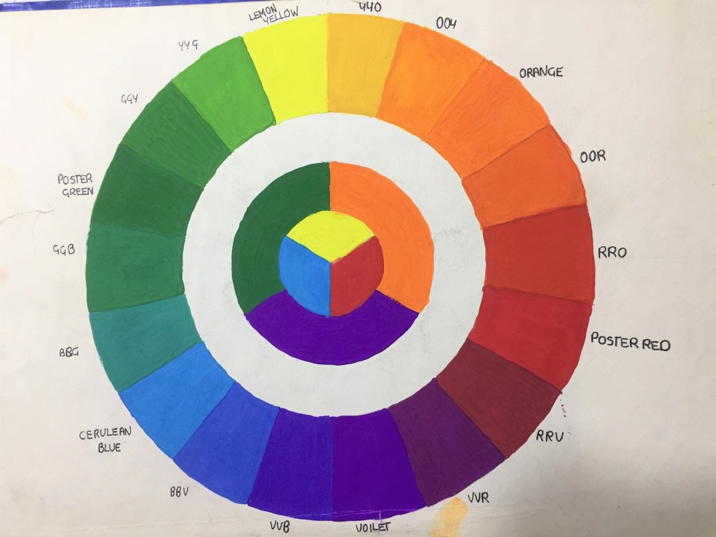 A colour wheel is an abstract illustrative organisation of colour hues. We make a colour wheel to theoretically build relationships between colours.