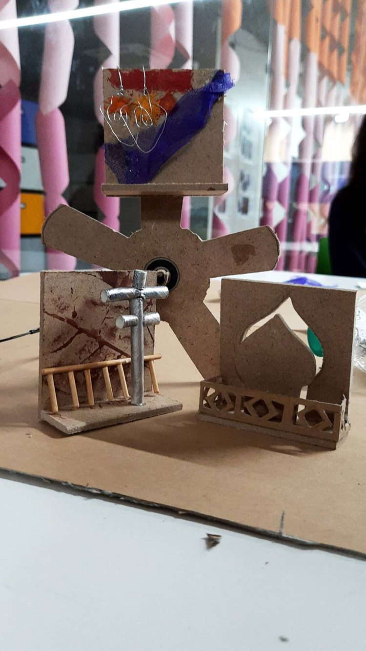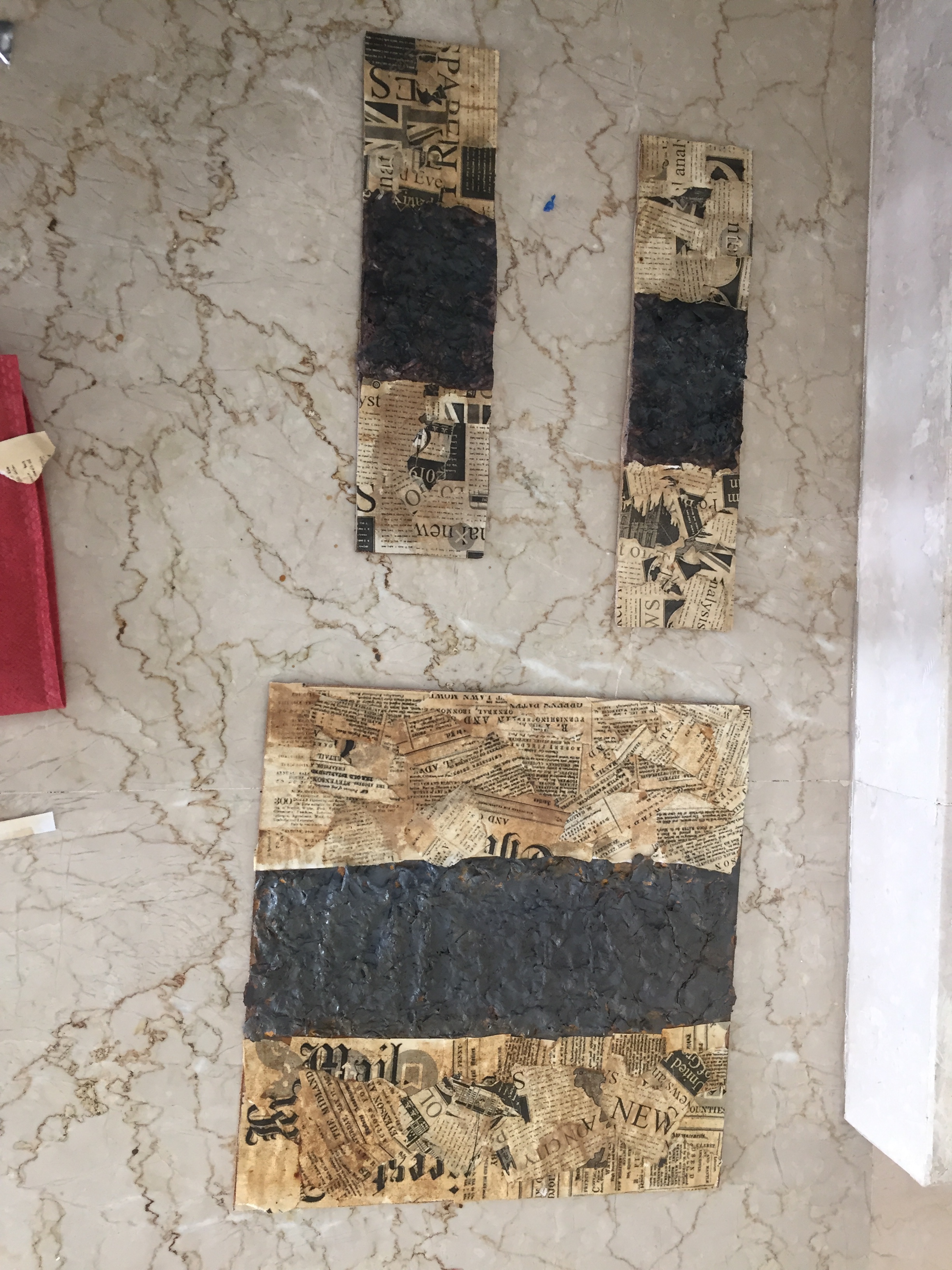 Lastly, we thought of making a box with basalt stone and old newspapers and putting our aspects in it.