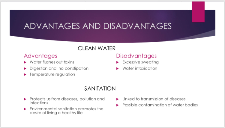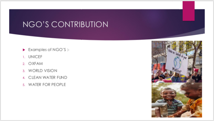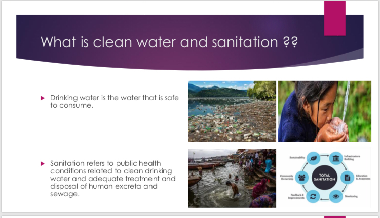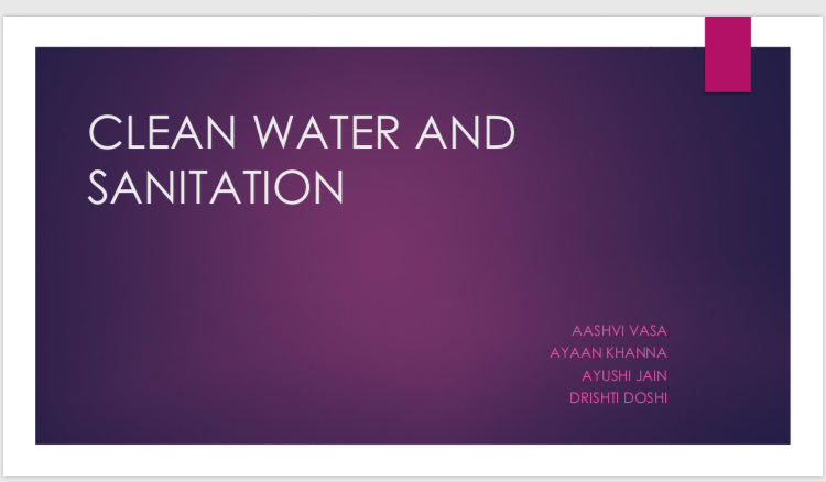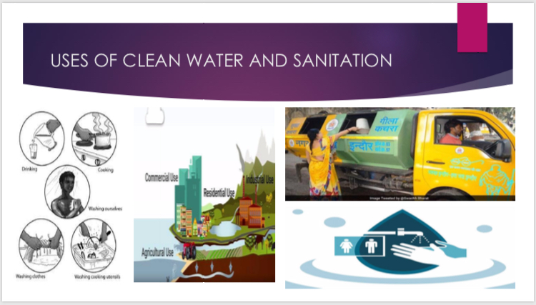 We started off this class by presenting our basic research about clean water and sanitation. After a lot of research we decided to put everything together. We wrote about the uses, advantages, disadvantages, its impacts on the surroundings and various NGOs that are working to provide clean drinking water and sanitation at national and international levels.