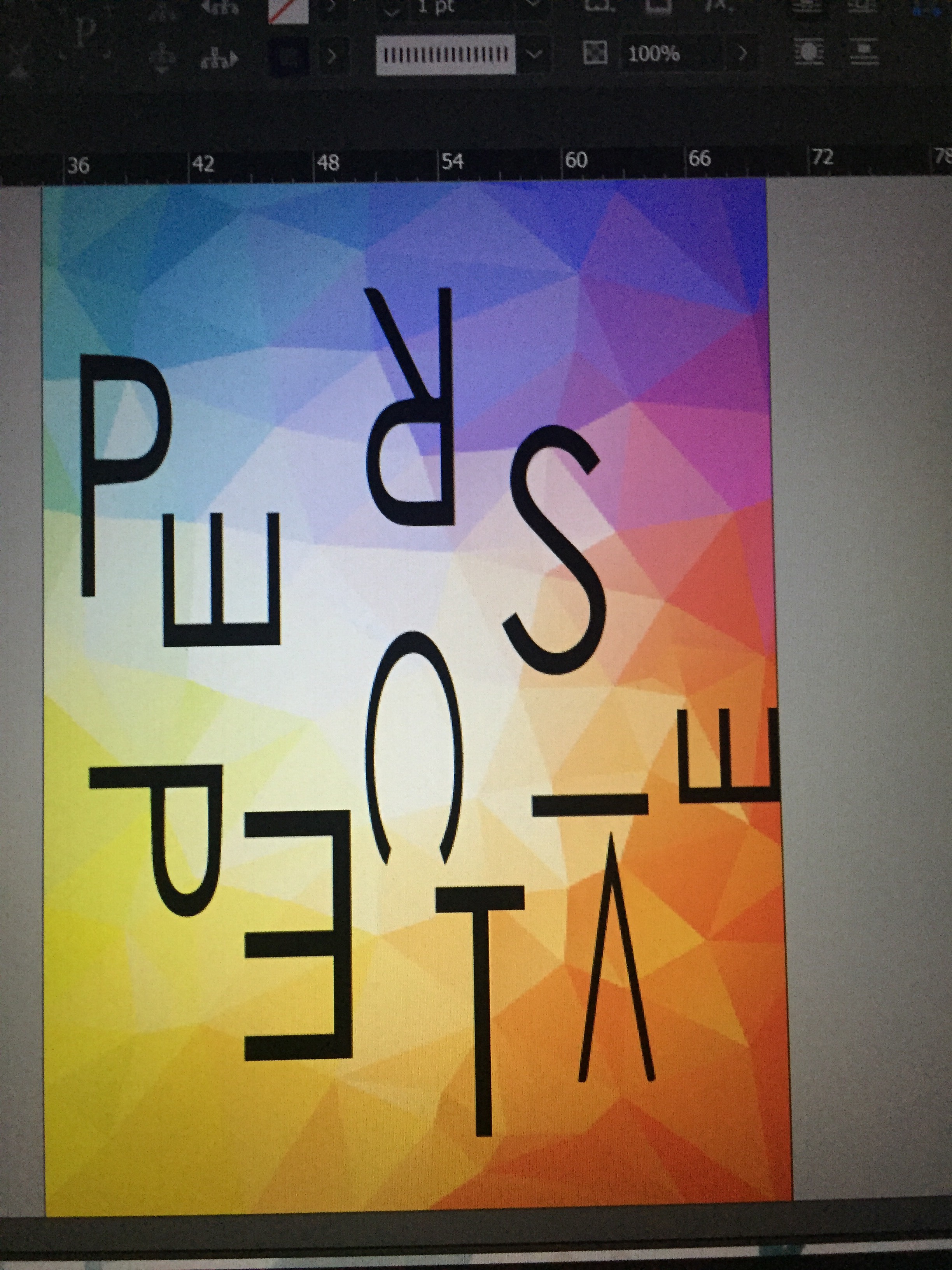 For the cover page, I thought of putting the word ‘perspective’ in a two point perspective with some inverted and rotated letters but it didn’t fit on my page and didn’t look as I was expecting it to. So I went for this simple layout by putting the letter randomly anywhere. I wasn’t very happy with my cover page after the print.