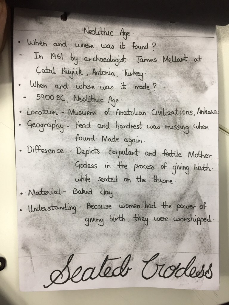 I decided to put all my knowledge and research about sculptures in a very concise manner. I wanted my timeline to be very apt and not have unnecessary information that was not related to the evolution of sculptures. I decided to focus on certain questions that are when and where was it found, when and where was it made, how did the geography of the place affect it,how does it differ from other civilisations,where is it located right now and some additional questions like material used and my understanding of the same.